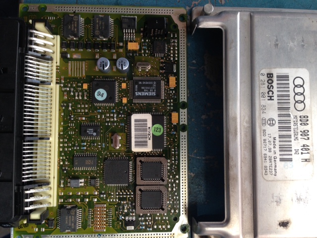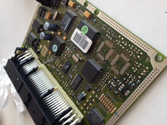 Para ello hemos tenido que sustituir las memorias internas en las que se encuentra el software del coche por dos chips mas modernos con memoria flash, que nos permiten borrarlos y reescribirlos repetidas veces. Este sistema también permite al propietario poner el coche de serie en el momento que quiera, ya que no tiene mas que cambiar los chips por los originales.