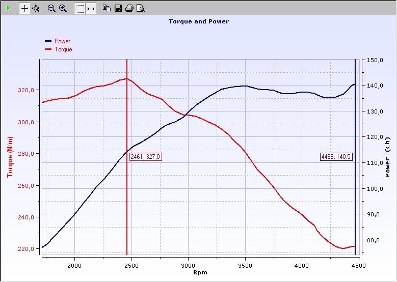 Despues de unos ajustes aumentamos la potencia 15cv mas, pero no disponemos de gráfica.